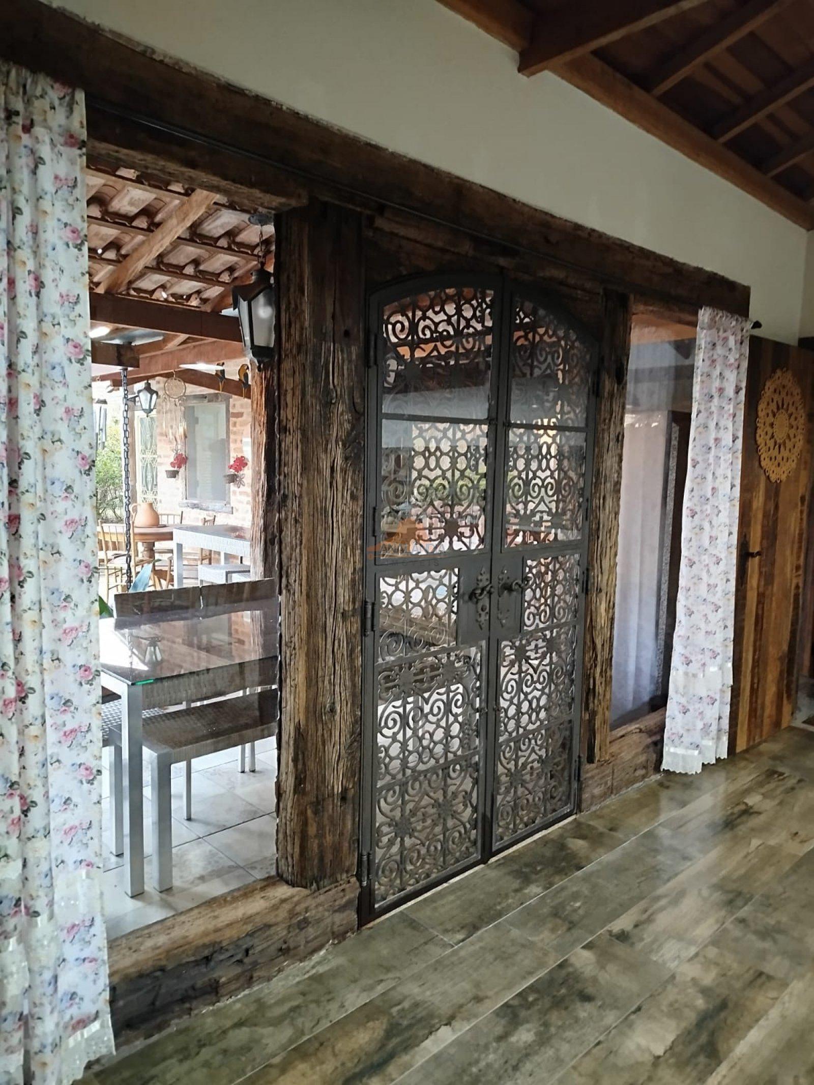 Casa construída inteiramente com tijolos de demolição com tamanho e peso fora do padrão (0,30x 0,14x 0,08, pesando 6.500kg cada unidade), todos os batentes de portas e janelas em dormentes (madeira de lei), portas e janelas em madeira de lei de demolição, todas as maçanetas das portas em ferro forjado, pisos e revestimentos em porcelanato.